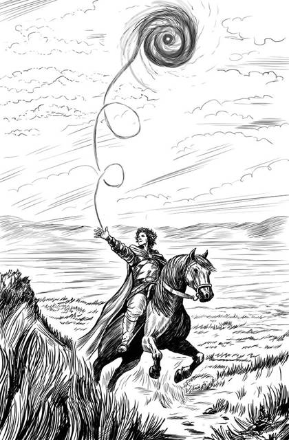 Завертев головой, увидел то, что до этого скрывалось за мельтешением толпы всадников. Оказывается, ещё не все ввязались в свалку. Маленькая группа разбойников замерла в отдалении, на краю склона, за которым, вроде как, скрывается сухое русло. Вступать в бой они не торопились, зато бой торопился к ним в виде нескольких всадников, среди которых, вот уж находка, я разглядел, наконец, Гласа. Мелкий негодяй вовсю пришпоривал своего коня. А так как животинка у него из самых дорогих, сумел оторваться от прочих и теперь первым нёсся к цели.
