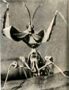 Объемистый зоб, желудок с разного рода облегчающими пищеварение органами, ферменты, сходные с теми, что выделяет поджелудочная железа позвоночных животных… – одним словом, богомолы отлично подготовлены природой для переваривания такой пищи, которая другим насекомым недоступна.Африканский богомол «дьявольский цветок»! Ярко окрашенные плоские выросты на его передних ногах и груди делают этого богомола очень похожим на цветок. Он терпеливо караулит насекомых, посещающих цветы.