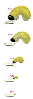 Так или иначе личинка насекомого выбралась из яйца. Она питается и растет. Но растет урывками лишь в определенные периоды своей жизни. Прочный наружный скелет членистоногих не позволяет им увеличивать размеры тела. Только во время линьки, когда старые хитиновые доспехи сброшены, а новые еще мягки и растяжимы, животное может расти. Насекомые, за очень малыми исключениями, растут только в стадии личинки. Взрослые не линяют и, следовательно, не растут (опять-таки повторяю, кроме немногих исключений: например, щетинохвосток, поденок).