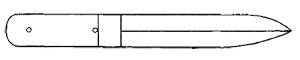 За долгие 30 лет, стоя у руководства Школой боевых искусств СЭН'Э (путь жизни, дорога жизни, дело всей жизни), мне пришлось перепробовать и познакомиться со многими видами оружия, в том числе и метательными. Как-то так само собой получилось, но скорее под воздействием А.А.Харлампиева, что за эти годы у меня выработалась своя методика владения ножом, ее каноны. Форма должна быть крайне утилитарна и функциональна. То есть только так и никак иначе. Опираясь на опыт Учителя, и далее на свой личный, я пришел к выводу, что метательный предмет, а именно нож, должен напоминать силуэт плывущей акулы (рис.1). Такой нож не только удобно метать, но им также удобно работать в ближнем бою и фехтовать на дистанции.