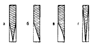 Сама заготовка ножа должна фрезероваться или затачиваться таким образом, чтобы режущая часть ножа была только с одной стороны. Заточи самой режущей кромки, могут быть 4-х видов, как показано на рис.3.
