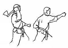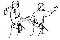 м метание топора производится лезвием к себе, тогда при втыкании в стенд или противника топор оказывается рукояткой вверх. Это как бы необычно, но очень эффективно.Рис. 41