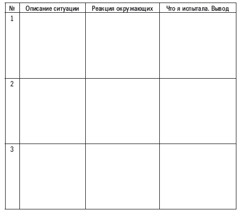 Если к настоящему моменту у вас уже есть подобные ситуации, также впишите их в таблицу.