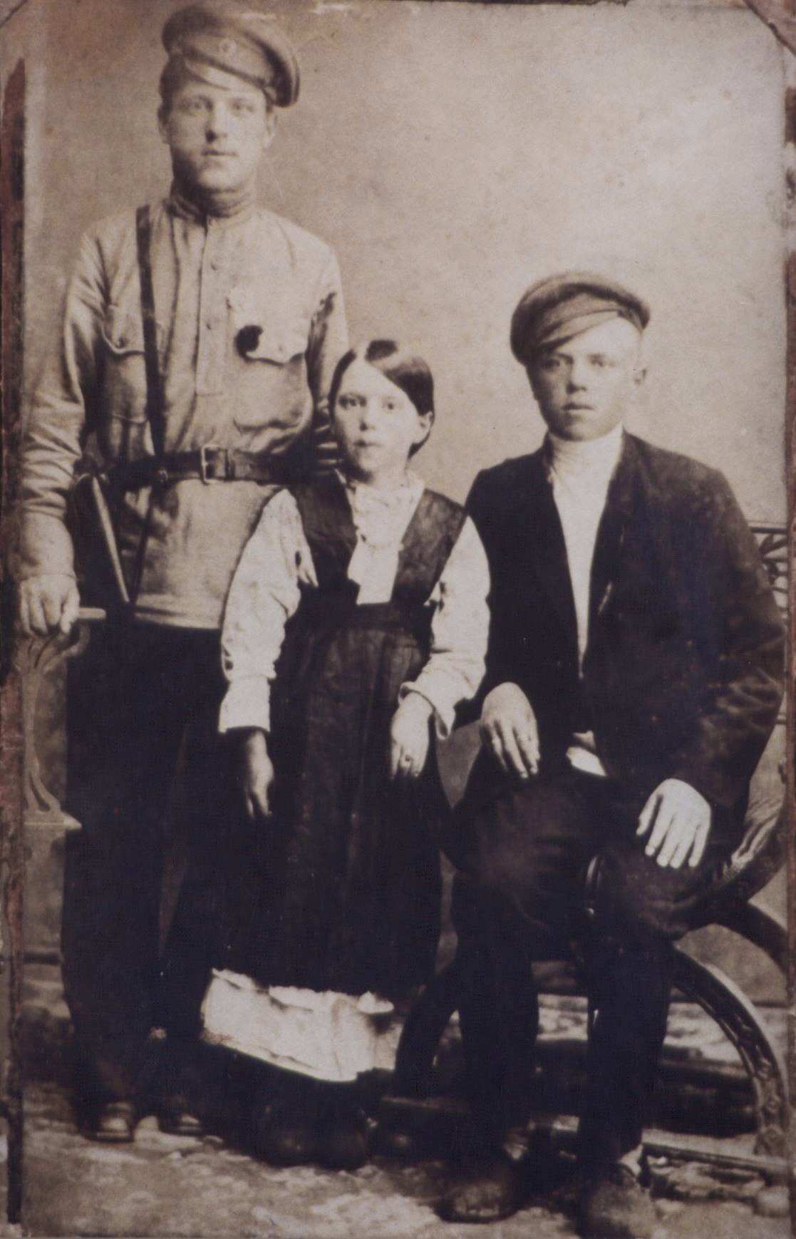 Слева направо: мой отец Павел Иванович Молостов, его сестра Мария и младший брат Григорий, фронтовик. Григорий родился в 1902, умер от ран 22 июля 1944 года. Похоронен в г. Новосокольники Псковской области.