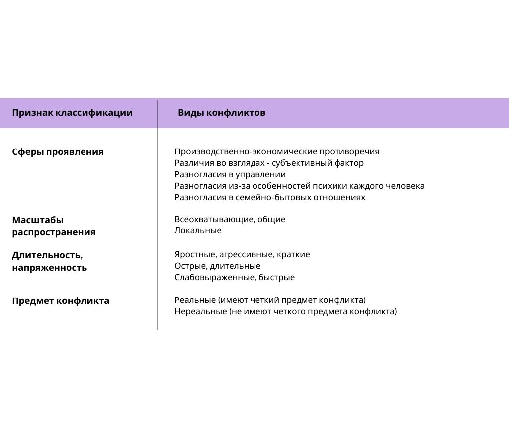 На практике конфликты, возникающие в организациях, можно классифицировать по признакам: сфера проявления; масштаб распространения;