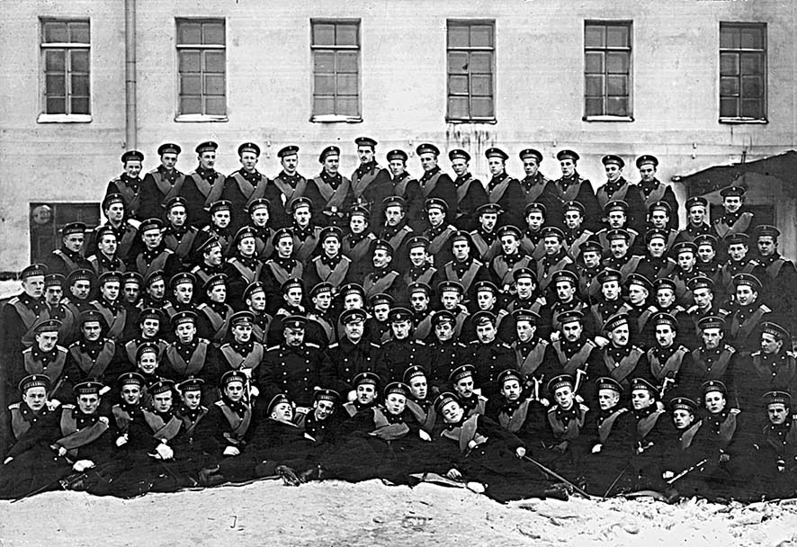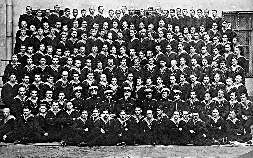 Кадеты Морского корпуса, 1915 год. Мичман Б.-С. А. Садовинский во втором ряду восьмой справа (из фондов ЦВММ, инв.№ 037452)