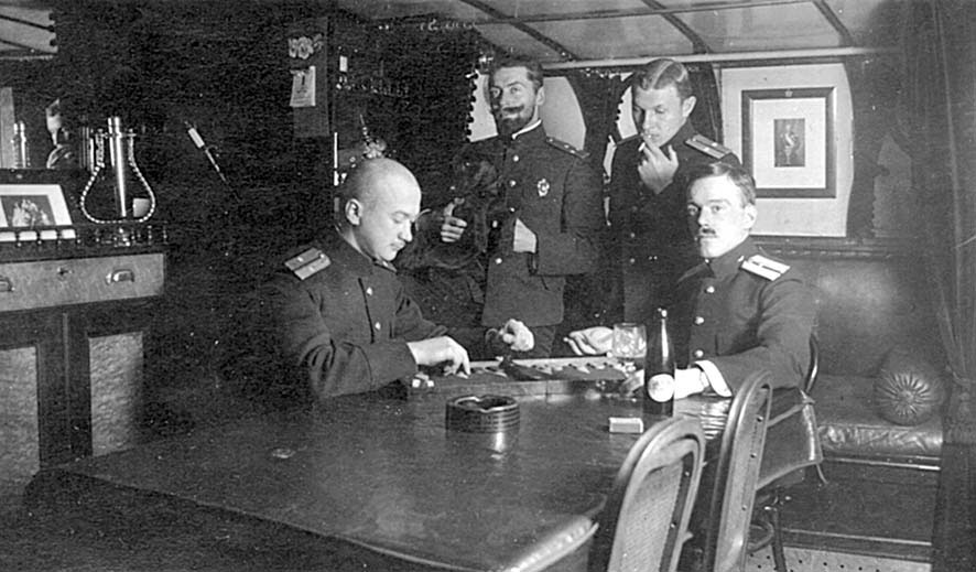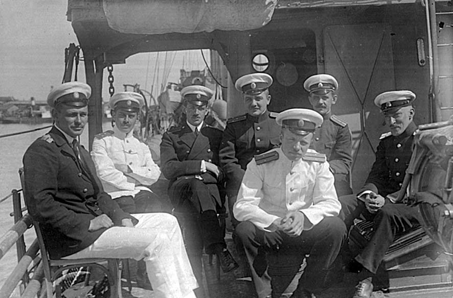 эсминца «Достойный». Слева направо: лейтенант Якимов, инженер-механик Розанов, мичман Антонович, мичман Пражмовский (из фондов ЦВММ, инв. № 040483.136)Адмирал В. А. Канин, в 1915–1916 годах — командующий Балтийским флотом