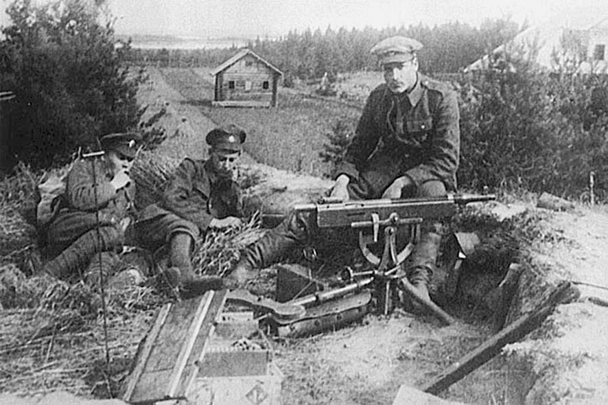 Команда пулеметчиков с пулеметом Кольта на Северной Двине. Лето 1919 года