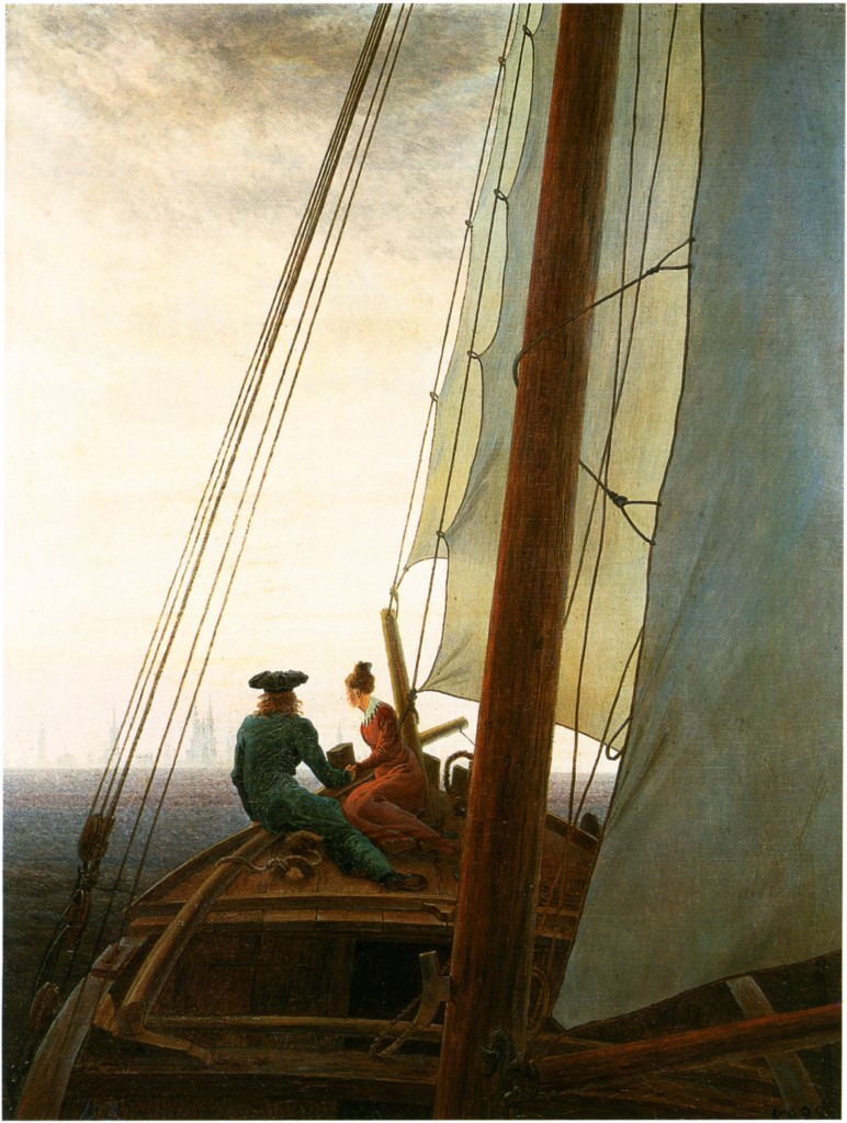 Ещё в последнее время всё чаще случались конфузы: для поддержания реноме она забиралась в самые недоступные места, и никто её не искал, представляете?«На борту парусника» Каспар Давид Фридрих