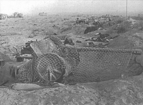 Оставленная на позиции 50-мм немецкая пушка Pak 38. Для маскировки она прикрыта специальной сетью. Северная Африка, ноябрь 1942 года