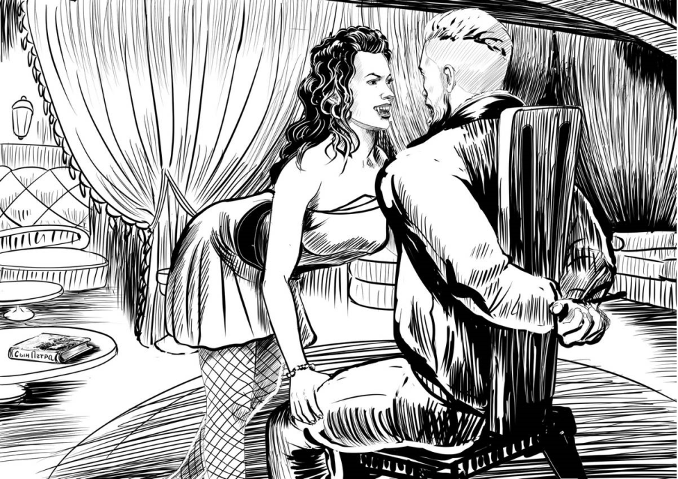 – Да ладно тебе придуряться, – раздраженно фыркнула девушка и попыталась было уже лизнуть его шею, но резко отпрянула, повинуясь хмурому взгляду одного из этих – в балахоне.