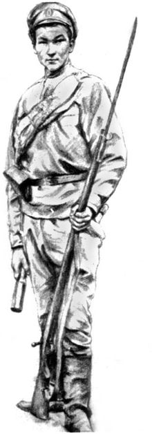 Разведчик 9-го Сибирского стрелкового полка Бараш Иван. В руке граната образца 1914 года