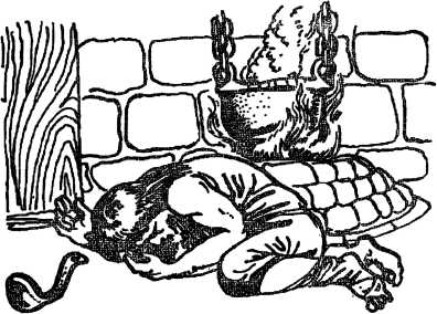 От неожиданности Кукша вздрагивает, батожок, покрытый застывшим салом, выскальзывает у него из рук, свечи падают на горячую медь и мгновенно оплавляются почти наполовину. Кукша проворно поднимает уроненный батожок, но поздно — полтора десятка свечей пропали.