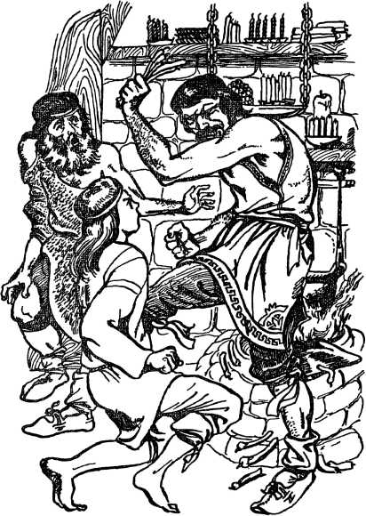 Кукша выхватывает из котла медный черпак на длинной деревянной ручке. Димитрий испуганно следит за его действиями. Кукше плевать, что перед ним, рабом, свободный, полноправный гражданин Византийской империи. Хоть бы это был хозяин Епифан или даже сам царь, все равно бы он получил свое! Димитрий закрывает голову, и удар приходится на руки. Удар столь силен, что Димитрий со стоном валится наземь.