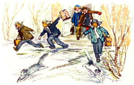 Саша гулял вместе с Валериком. Сегодня бабушка разрешила сменить полушубок на пальто и вместо валенок надеть ботинки на толстой подошве. А на Валерике была теплая курточка на подкладке и сапожки. Мальчики ходили взад-вперед по освободившемуся от снега черному асфальту и наблюдали.