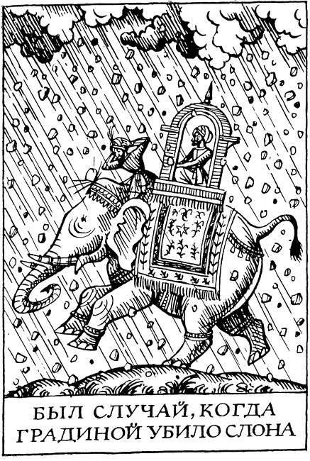 В Индии после града, выпавшего летом в 1939 году, нашли градину, весившую 3,4 килограмма. Говорят, однажды был случай, когда градом убило слона. Но правда это или выдумка, сказать трудно.