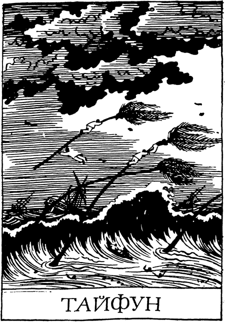 Но, кроме них, в атмосфере зарождаются и развиваются грандиозные вихри, вовлекающие в свою орбиту огромные массы воздуха. Эти вихри — тайфуны и ураганы. Закручиваясь в гигантские спирали, они путешествуют по планете, описывая дуги и траектории, длина которых исчисляется тысячами километров.