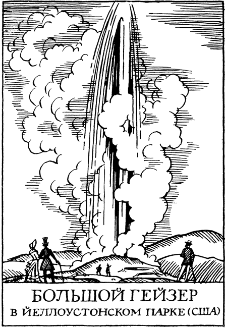 Среди них самый знаменитый, известный всему миру Большой гейзер. Мы не знаем, кто первым увидел гигантский водомет и долго, словно зачарованный, созерцал это изумительное творение природы. С тех пор много веков прошло, и история не сохранила имя первооткрывателя. Но никогда не зарастала и не пустела ведущая к нему дорога. Имя его стало нарицательным для всех других фонтанирующих источников земного шара, ибо исландское слово «geysir» есть производное от «geysa» — хлынуть.