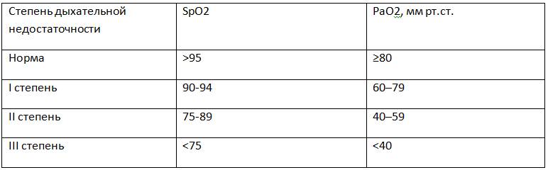Примечание. PaO2 – парциальное напряжение кислорода в артериальной крови, SрO2 –насыщение гемоглобина крови кислородом.