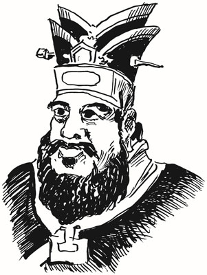 Легенда гласит, что будущий великий философ Лао-цзы (конец VII – нач. VI вв. до н. э.) поначалу служил архивариусом при царском дворе. Свое знаменитое имя он получил, уже став известным учителем мудрости, да оно и значит – «старый учитель». О Лао-цзы рассказывали множество легенд. Говорили даже, что он владел секретом бессмертия. Однажды Лао-цзы решил совершить путешествие через горный перевал Ханьгу. Но его слуга, Сюй-цзы, которому было даровано бессмертие, отказался сопровождать хозяина, требуя, чтобы философ уплатил ему по 100 монет за каждый день предыдущей службы. Поскольку выяснилось, что срок службы насчитывал уже 200 лет, то Лао-цзы, конечно, не мог уплатить такую огромную сумму. Слуга пожаловался чиновнику, и тот призвал к себе старого учителя. Придя на суд,