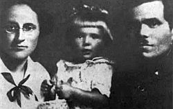 Махно с женой и дочерью Люсей. 1925 год.