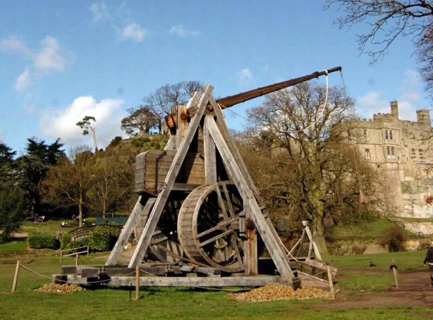 Варяг кивнул — подготовленные площадки для установки баллист, спрингалдов (которые будут стрелять греческим огнем), тяговых требушетов мангонель контролировали не только реку, но и подходы к самой крепости. Мангонель представлял собой большую вертикальную раму с большим рычагом или «рукой», прикрепленным к вершине. Рука раскачивалась вертикально и приводилась в движение людьми, тянувшими за веревки, прикрепленные к одному из концов. На противоположном конце рычага крепились стропы, в них размещали снаряды. Когда люди тянули за один конец рычага, он поворачивался в раме, раскачивая пращу и снаряд вверх и вперед. Затем на вершине образовавшейся дуги стропы выпускают снаряды. Эта осадная машина имела явные преимущества перед катапультой: она была менее сложной и ее легче было собрать. Кроме того, даже перезарядка была быстрее, поэтому можно было поддерживать большую скорострельность. Для обстрела реки здесь будут стоять три требушета с противовесом, очень похожим по конструкции на мангонель, за исключением того, что в нем использовался противовес для поворота рукоятки оружия под действием силы тяжести, это придавало орудию гораздо большую мощность. Требушет с противовесом будет большим, высотой около тридцати метров.