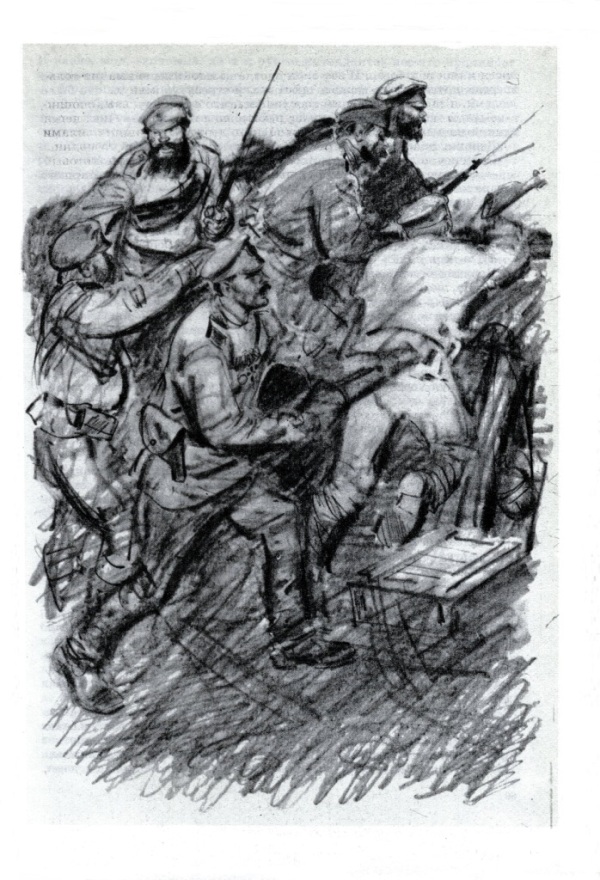 — Впере-ед! — горланил уже унтер. — Подбирай зады, подбирай!.. — И прикладом винтовки, будто лопатой, принялся выгребать ратников из окопа. Но люди упреждали его усилия: с проворством, какого трудно было ожидать от пожилых крестьян, ратники покидали окоп. Только потрескивала под их ногами жердевая стенка. Вылезет бородач на бруствер