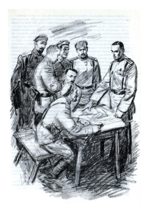 Застигнутый врасплох, я не сразу понял, что происходит у стола. Куда девалась сковавшая было офицеров холодная замкнутость. Никто уже не сидел, как вросший в стул, — люди вскакивали, тянулись к карте, и там, на ее поле с голубыми змейками рек и зелеными разливами лесов толкались и сталкивались между собой пальцы спорщиков. Шум поднялся в комнате, прорывалась уже и запальчивость в голосах, а подполковник сидел, откинувшись на спинку стула, разрумянившийся, улыбающийся, явно довольный развязанной им битвой у карты. В руке он держал карандаш — тупым концом книзу — и, следя за высказываниями, временами в знак одобрения той или иной мысли с силой ударял карандашом по столу, восклицая: «Именно так!» или: «Смелее формулируйте!»