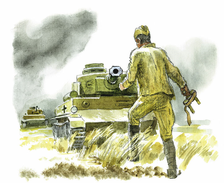Бьются солдаты. Ни шагу назад! А танки всё ближе и ближе.