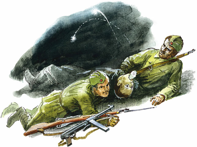 Бросились фашисты в атаку. Удержали рубеж гвардейцы. Перевязали друг другу раны, снова готовы к бою.