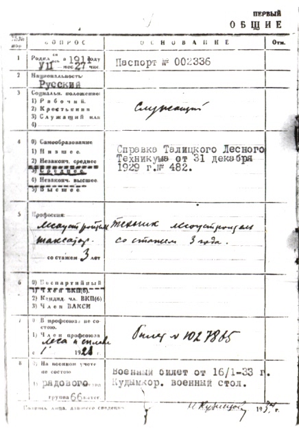 «§5. Слушали: Заявление Кузнецова Н.И., год рождения 1911, в комсомоле с 1926 года, сын зажиточного крестьянина, сам служащий. Работает в Коми-Пермяцком округе лесоустроителем. Исключен Талицким Райкомом за сокрытие социального происхождения, как сын кулака – участника в белой банде. Кузнецовым предъявлены документы, опровергающие данное обвинение.
