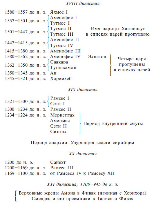 широкую популярность. Каждое важное для общественной жизни действо непременно должно было быть одобрено статуей Амона, то склонявшей голову, то жестикулировавшей в знак согласия или отказа. Статуя была сложно действующим механизмом, которым управляли специально выделенные для этой цели жрецы. В толще стен святилища были оборудованы тайники, из которых жрецы вещали вместо оракула. Царские указы были теперь указами Амона. Теократия эффективно заменила собой земную власть.Кроме того, верховные жрецы, независимо от того, были они царями или нет, вполне искренно стремились действовать как подлинные преемники великих фиванских монархов. В то время как последние Рамессиды были бессильны предотвратить открытое и бесстыдное разграбление царских усыпальниц, Херихор и его преемники посещали некрополи Долин царей и цариц, восстанавливали гробницы и, чтобы спасти от надругательства и уничтожения хотя бы тела царей, извлекали их из саркофагов и укрывали в различных тайниках. Одним из таких тайников была яма за храмом Дейр-эль-Бахри, где три тысячелетия спустя, в 1881 году, мумии царей нашел Масперо.