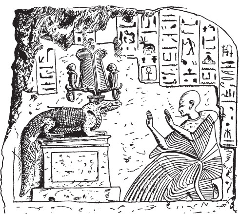 Рис. 65. Поклонение Себеку-Ра в образе крокодила. XIX