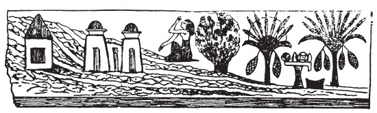1) портик и мощеную дорогу, 2) храм для статуй и 3) пирамиду. Эти три элемента соответствуют часовне, сердабу и погребальной камере мастаб, строившихся для менее значительных людей. Три обязательных элемента сохраняются во все времена. Фиванских царей погребали в высеченных в скалах склепах, а не в пирамидах, но и здесь мы видим храм в долине (например, Рамессеум, илл. 42, 43), гробницу, высеченную в Западной горе (илл. 50), в которую помещались статуи и погребальный инвентарь, а также камеру для мумии. Частные лица, стремившиеся удешевить строительство, ограничивались склепом с шахтой и часовнями, возводимыми за пределами гробниц (рис. 75). Часовни эти до нашего времени не сохранились.