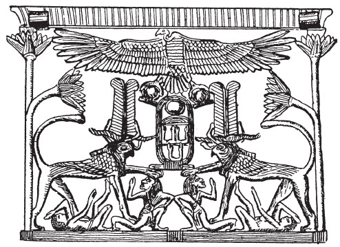 Рис. 79. Пектораль в виде святилища с лотосовидными колоннами.