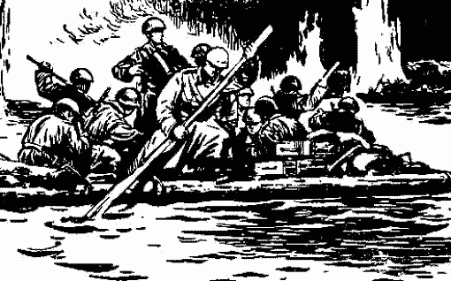 Грузный и вымокший боец терял сознание, его переправили с большим трудом. Вслед за ним втащили на плот четырех барахтавшихся в воде солдат. Один из них отчаянно ругал немецкую батарею.