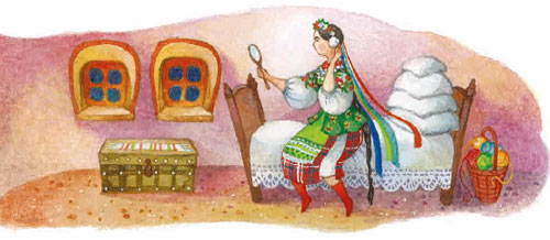 – Будет готов, моё серденько, после праздника будет готов. Если бы ты знала, сколько возился около него: две ночи не выходил из кузницы; зато ни у одной поповны не будет такого сундука. Железо на оковку положил такое, какого не клал на сотникову таратайку, когда ходил на работу в Полтаву. А как будет расписан! Хоть весь околоток выходи своими беленькими ножками, не найдёшь такого! По всему полю будут раскиданы красные и синие цветы. Гореть будет, как жар. Не сердись же на меня! Позволь хоть поговорить, хоть поглядеть на тебя!