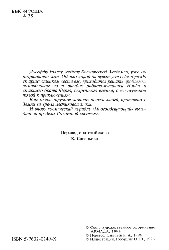 — Но даже джемианские роботы не знают, как им воссоздать особенные таланты Норби,— перебил Джефф.— Старый космолётчик Мак-Гилликадди случайно пробудил их, когда нашёл инопланетные детали Норби на одном из астероидов.