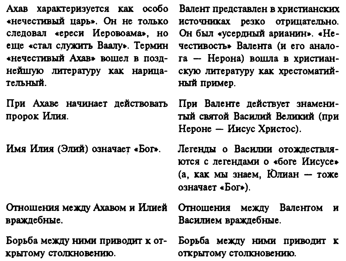 Тут нам представляется уместным привести биографические параллели царей Израильского царства и императоров Ромейской империи IV века, сделанные А. Т. Фоменко в части, касающейся библейского царя Ахава и императора Валента.