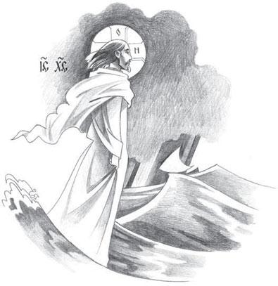 В смелой решимости и с полной надеждой на всемогущую силу своего Учителя и Господа Петр перешагнул через борт лодки. Волны подхватили его, и он пошел по воде, чтобы подойти к Иисусу. Христос был совсем близко, как вдруг сильный порыв ветра поднял новые огромные волны. Сомнение закралось в душу Петра. Он испугался и, начав утопать, закричал: «Господи! спаси меня». Иисус тотчас протянул к нему руку и, поддержав его, сказал: «Маловерный! зачем ты усомнился?» (Мф. 14, 31).