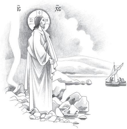 Из Иерусалима, по повелению Господа, апостолы пошли в Галилею. Там они занялись своими обычными делами. Однажды Петр отправился ловить рыбу. С ним пошли Фома, Нафанаил (Варфоломей), сыновья Зеведеевы (Иаков и Иоанн) и двое других учеников Христа. Всю ночь закидывали они сети, но так ничего и не поймали. Уже светало, когда апостолы решили возвратиться домой и направили свою лодку к берегу. На берегу стоял Иисус Христос, однако они не узнали Его. Господь спросил: «Дети! есть ли у вас какая пища?» Они отвечали Ему: «Нет» (Ин. 21, 5). Тогда Иисус сказал им: «Закиньте сеть по правую сторону лодки, и поймаете» (Ин. 20, 6). Они закинули и поймали великое множество рыбы, так что сеть едва не прорвалась [31] . Тогда Иоанн сказал Петру: «Это Господь» (Ин. 21, 7). Услышав эти слова, апостол Петр немедленно бросился в воду и вплавь достиг берега. Вслед за ним и другие апостолы приплыли на лодке, таща к берегу тяжелую, переполненную рыбами, сеть. Выйдя на берег, они увидели разложенный костер и на нем лежащую рыбу и хлеб. Христос сказал ученикам: «Придите, обедайте» (Ин. 21, 12).