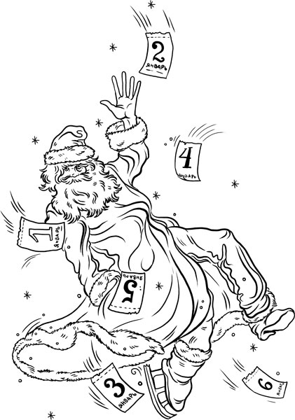По парку галсами движется джентльмен в шапке Деда Мороза, подвыпивший ровно до такой степени, чтобы судно не заваливалось во время движения. С катка доносится музыка. Джентльмен в нарушение всех законов мореплавания пытается изобразить фуэте и уверенно пришвартовывается в сугроб. Встает, отряхивается и делает такой жест, как будто палец его – перевернутый