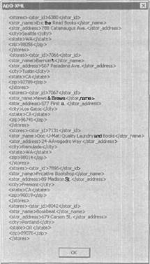 РИС. 10.2. Диалоговое окно с XML-данными, извлеченными из СУБД SQL Server