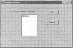 8. В окне Properties укажите значение Archive all orders for the year для свойства Text надписи, значение OK для кнопки btnOK и значение Cancel для кнопки btnCancel.