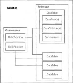 Объект DataSet является ключевым объектом ADO.NET и служит универсальным контейнером данных, независимо от используемого источника данных. Объект DataSet и связанные с ним подчиненные объекты предлагают реляционное представление данных, хотя он также способен загружать и сохранять свои данные в формате XML. Объект DataSet предлагает явную модель хранения данных в оперативной памяти, которая существует в полностью отключенном от источника данных состоянии и может легко передаваться между разными адресными пространствами и компьютерами.
