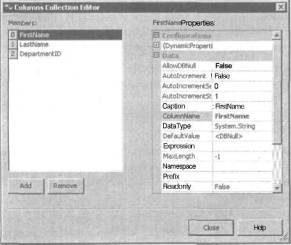 12. В панели свойств Employees Properties выберите свойство Columns и щелкните на кнопке с многоточием в правой части этого свойства для отображения диалогового окна Columns Collection Editor (Редактор коллекции полей).