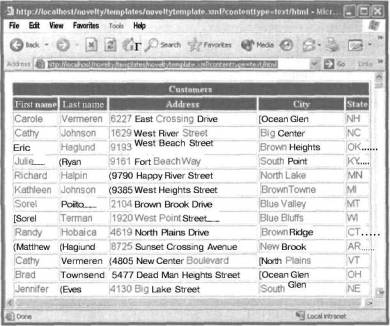РИС. 9.14. Результат представления данных с помощью XML-шаблона и технологии XSL