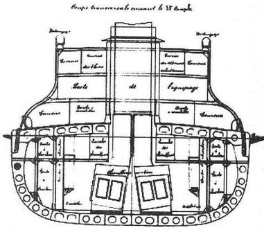 Броненосец “Карно ”. 1896 г. (Поперечное сечение корпуса в районе миделя)