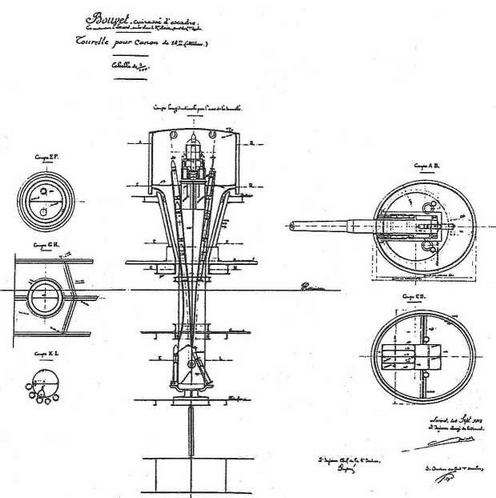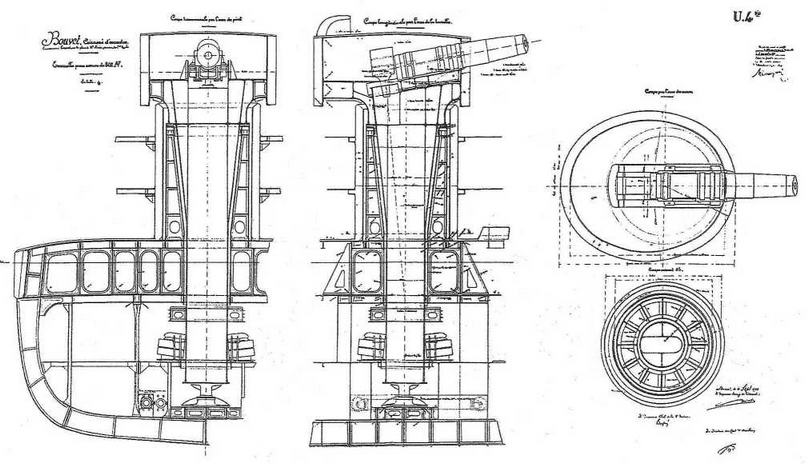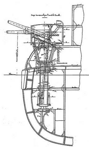 Поперечное сечение башни для 274,4-мм орудия бывшей на вооружении броненосцев французского флота