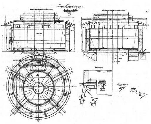 Чертеж 1-го варианта проекта боевой рубки для броненосца “Карно” утвержденный 29 августа 1891 г.